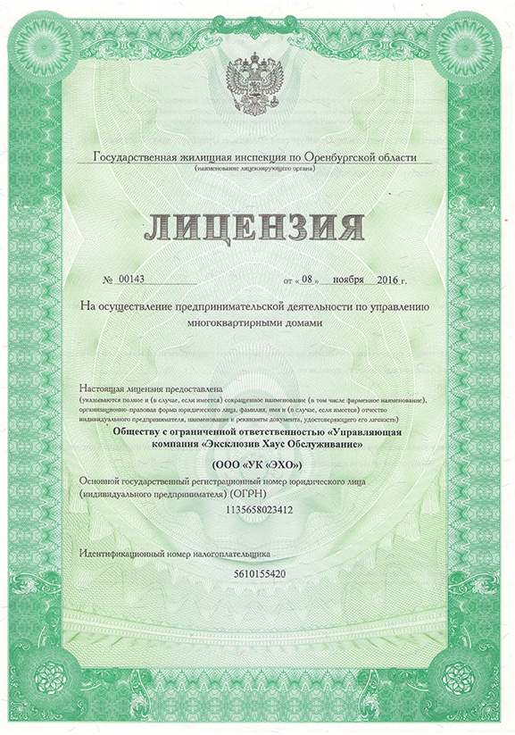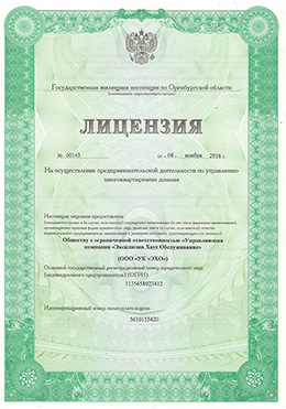 Общество с ограниченной ответственностью «Управляющая компания «Эксклюзив Хаус Обслуживание» осуществляет деятельность по управлению многоквартирными домами на основании лицензии № 00143 от 08.11.2016 г.
